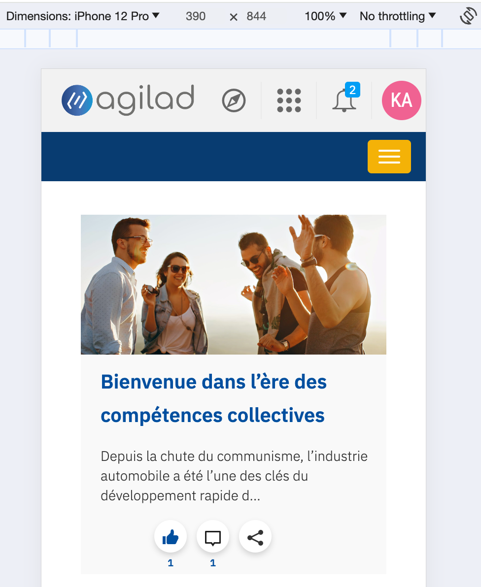Tous les composants Koala sont responsives et s'intègrement complètement dans les portails Jalios. Cette complétude vous permettra de lancer rapidement votre volet de communication.